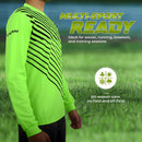 - Unmatched Comfort with Moisture-Wicking Technology: Experience comfort even during the hottest games with the goalkeeper jersey lightweight and quick-drying properties. The moisture-wicking material efficiently absorbs sweat, keeping you dry on the pitch and allowing you to focus on your performance. This jersey is not just sportswear; it's a companion that keeps you comfortable through every game.
