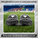 - Expertly Crafted for Durability and Style: Expertly crafted using high-quality PU and EVA material, theseslide sandals provide exceptional durability and resilience. The stylish design adds flair, making them a fashionable choice for young soccer enthusiasts. Whether on the field or off, these sandals offer reliable comfort and support.