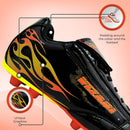 The Blaze Firm Ground Soccer Shoes - Black/Orange are more than just cleats; they are a fusion of style and functionality, providing young players with the tools they need to excel on the soccer field. Elevate your game with these exceptional cleats that prioritize style, comfort, durability, and grip for a truly outstanding playing experience.
