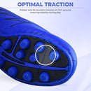 Unleash the potential of budding soccer talents with Vizari Unisex Boca Firm Ground Soccer Shoes - Blue/Black. Designed for outdoor firm-ground soccer games, these cleats are meticulously crafted to provide the best possible performance. The strong and durable two-color textured synthetic upper, coupled with an anti-stretch lining, ensures longevity and maintains shape over time. Padded heel and collar lining contribute to overall comfort, making theseblue soccer cleats ideal for extended wear during matches.