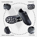 Vizari makes the best firm ground soccer shoes and field cleats for your kids to play in. With a strong focus on quality, innovation, and design, Vizari is proud that they are setting the standard when it comes to cleat manufacturing. The Stealth Firm Ground soccer shoes - Black/White feature a polyurethane sole for comfort and enhanced traction. The upper is crafted from a two-color textured synthetic material, known for its strength and durability. It is also equipped with an anti-stretch lining to maintain its shape over time. The padded heel and collar lining provide added comfort, reducing friction and discomfort during play. The two-color molded rubber outsole offers both comfort and traction, allowing players to move swiftly and confidently. the firm ground cleats are made from lightweight, durable, and stretch-resistant material, making them a reliable choice for players of all levels.