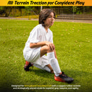 These shoes provide excellent traction. The two-color molded rubber outsole keeps my son steady on the field.